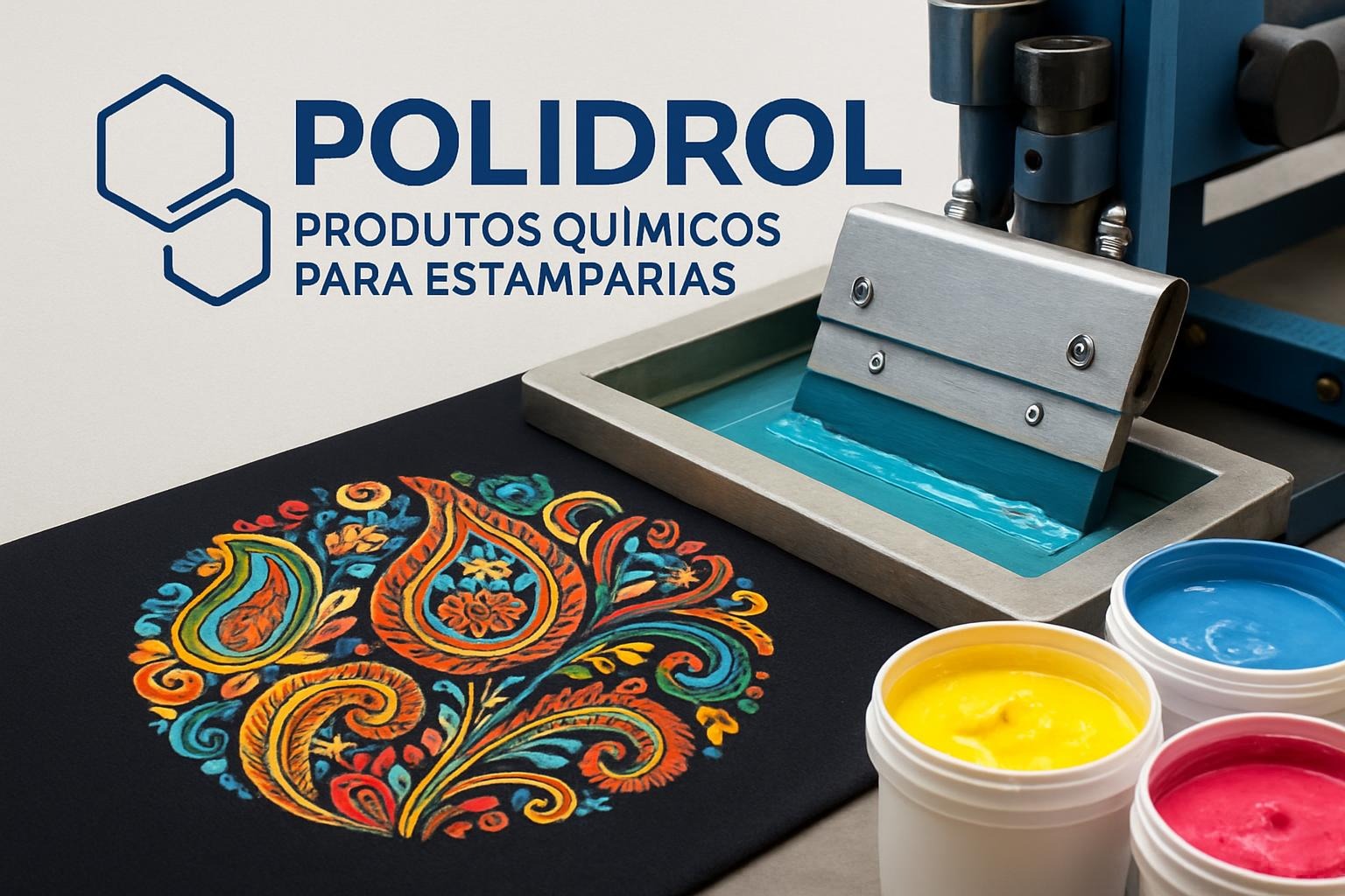 A Polidrol oferece diversos produtos químicos específicos para estamparia, incluindo: