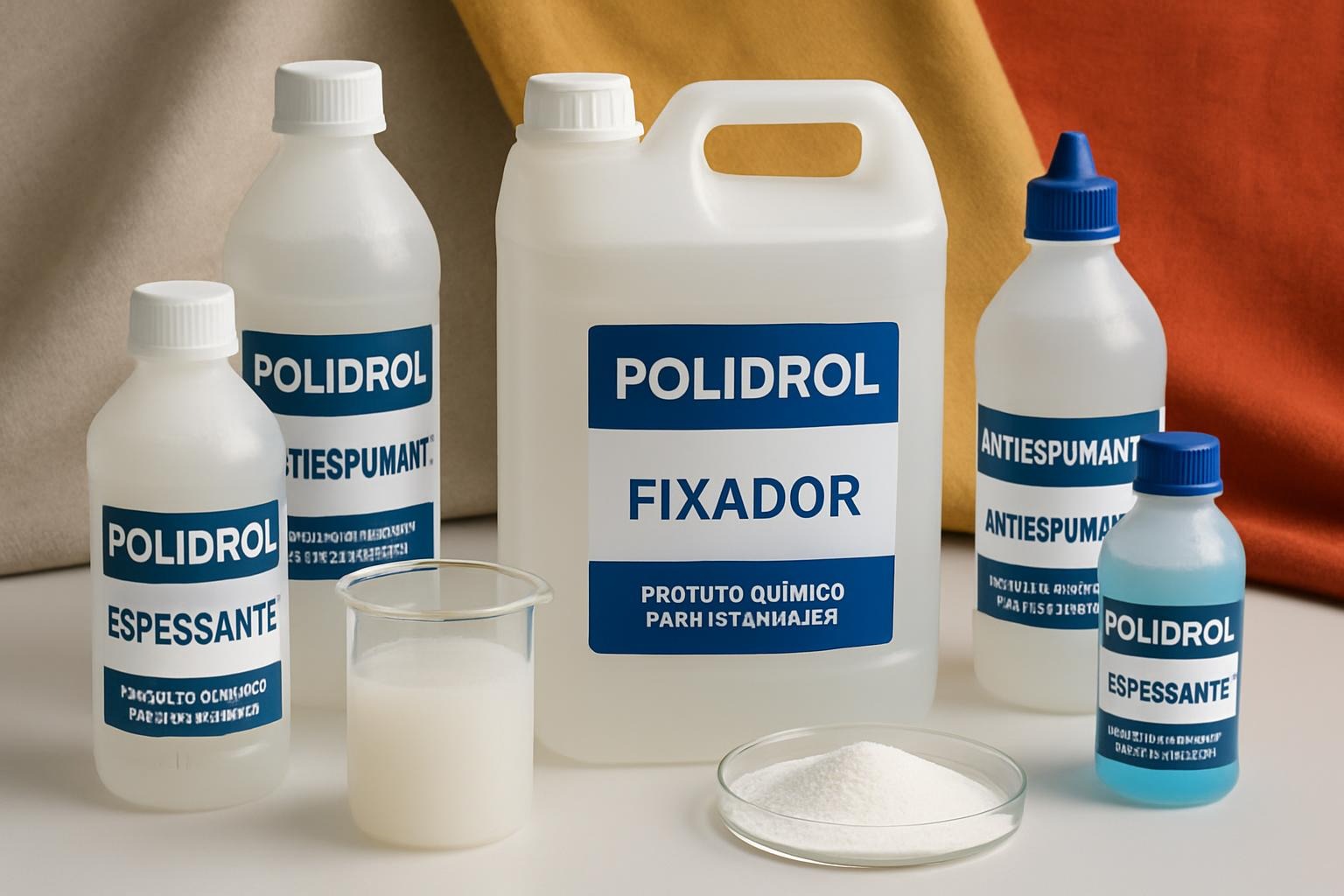 No universo da estamparia têxtil, os produtos químicos desempenham um papel fundamental. Eles são responsáveis pela preparação dos tecidos, pela fixação das cores e pela proteção das fibras contra desgastes e danos. A Polidrol oferece uma linha completa de produtos, tais como:
